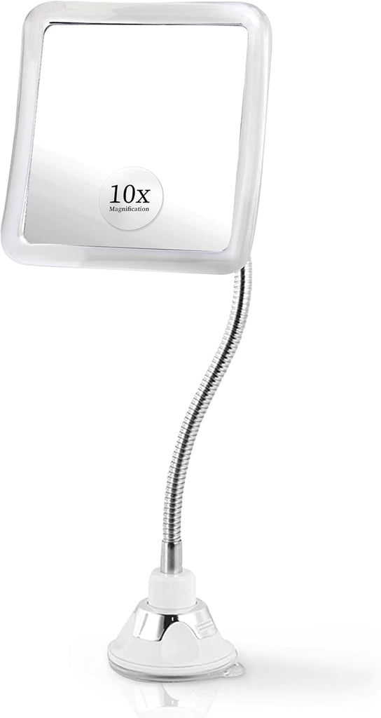 MIRRORVANA 10X Magnifying Makeup Mirror - Flexible Design with Adjustable Gooseneck and Suction Cup, 2-in-1 Tabletop and Wall-Mounted for Vanity or Bathroom Use - 6.3" x 6.3" (Square)