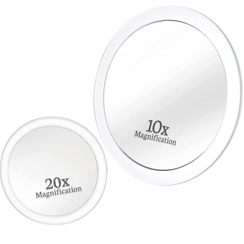 MIRRORVANA Magnifying Mirror Set Combo with 3 Suction Cups Each - Compact & Travel Ready (Glass (20X & 10X))