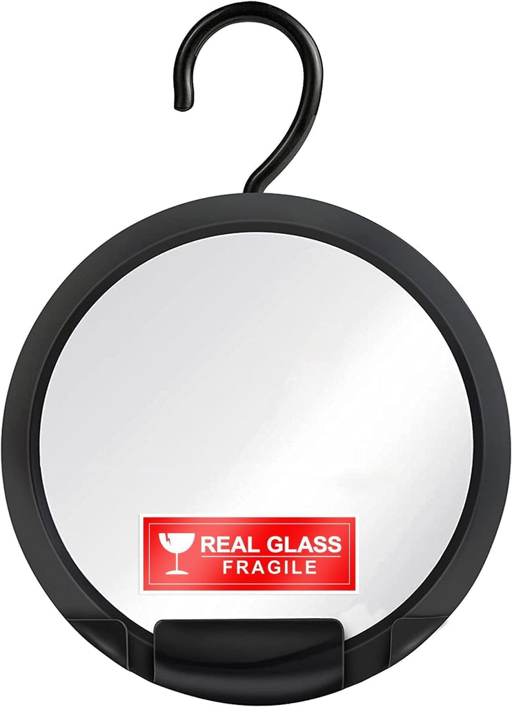 MIRRORVANA Round Hanging Fogless Shower Mirror for Shaving with Real Glass Surface and Adjustable Swivel Hook - Simply Fill Back Chamber/Reservoir with Hot Water
